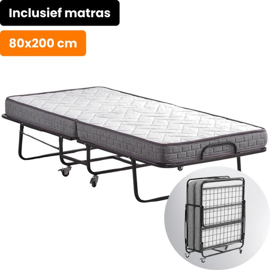 Op zoek naar een hoogwaardig en comfortabel logeerbed met matras? Dit vouwbed van Best Life is een uitstekende keuze voor één persoon en is makkelijk in te klappen en verplaatsen dankzij de wieltjes. Het 11 centimeter dikke matras ligt lekker en de metalen bodem voelt stevig aan.
